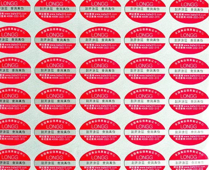 刮刮銀防偽標簽也叫刮開式數碼防偽標簽是指相應的查詢數碼是通過刮開刮刮銀之后獲取,標簽的原理為數碼防偽原理,在獲取防偽編碼后,通過標簽上的指定查詢方式進行驗證查詢,從而得到該標簽的真偽信息。